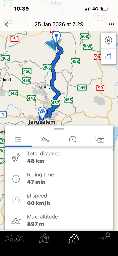 As you can see, I drove at an average speed of 60 km/h which is an amazing achievement and can be done only by motorcycle (well, any motorcycle). By car these 48 km now take between 90 and 120 minutes.