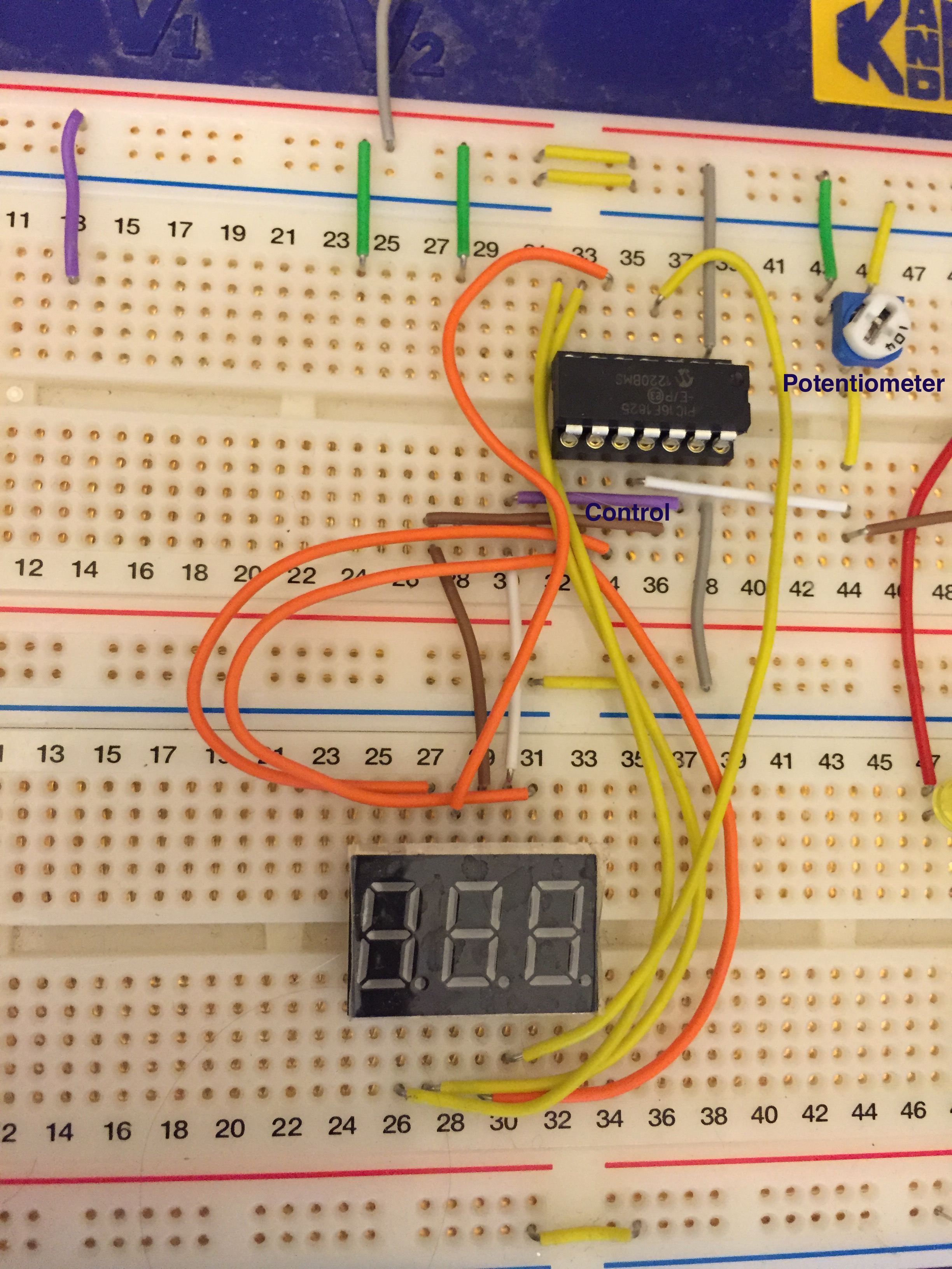 First of all, here is the final system. Notice how the numbers on the display change as I turn to pot with the screwdriver.