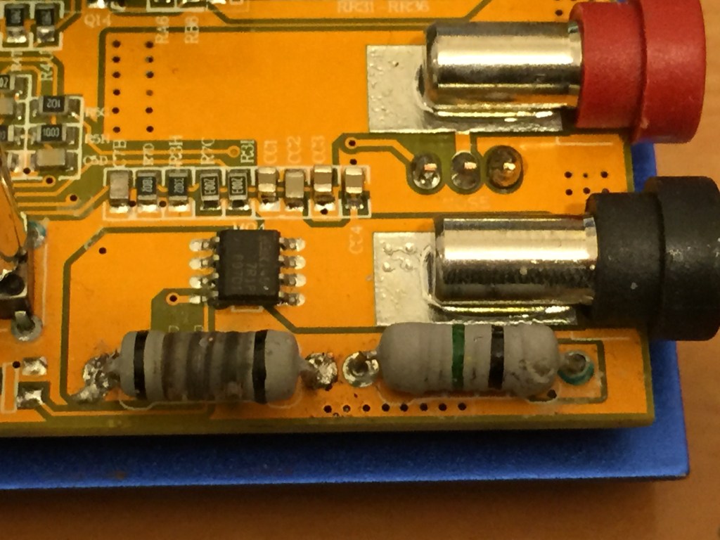 I connected a load resistor – 10 Ohm 10 Watt – between one of the +5V lines (red) and ground. The purpose of the load resistor is to maintain a load on the power supply because the power supply shuts down if there is no load. I spread a small amount of heat sink to the back of the power resistor and attached it to the ventilated part of the power supply case.