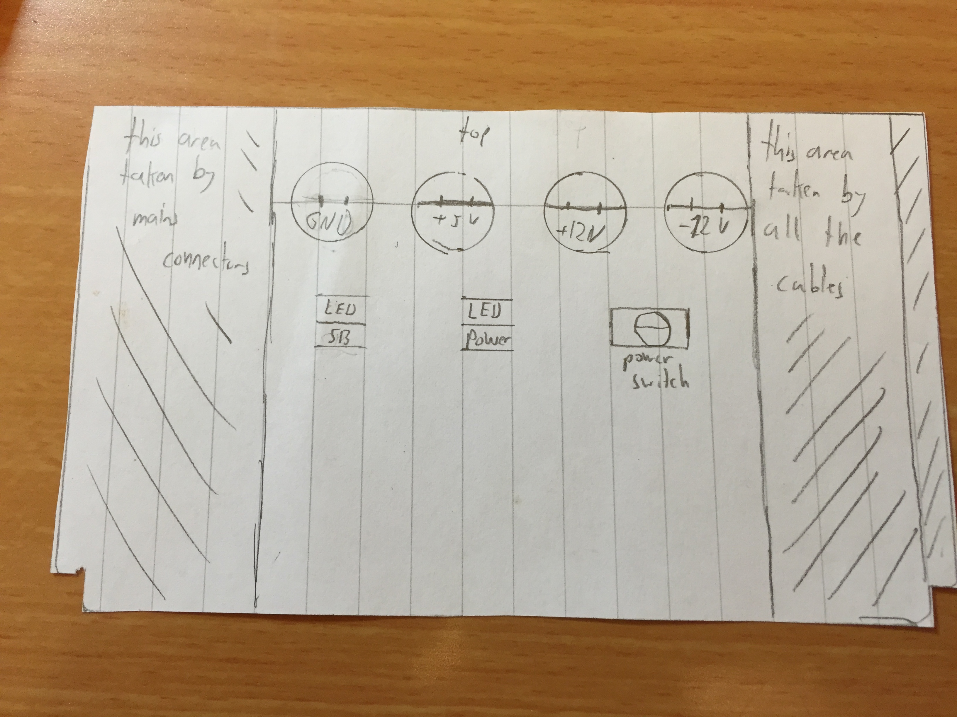 I cut a piece of paper to the size of the side of the power supply and drew all the connectors.